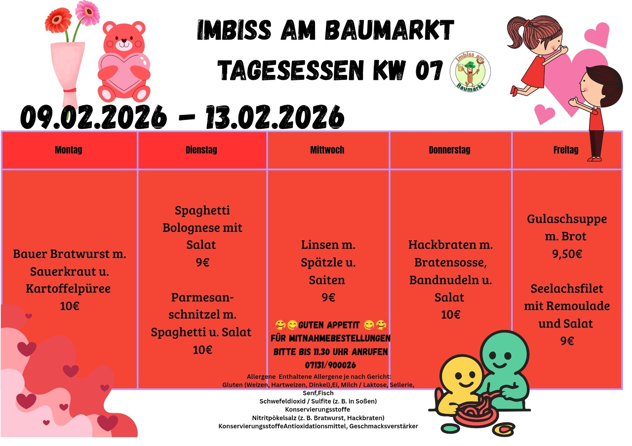 Imbiss am Baumarkt LeingartenTagesessen KW 7