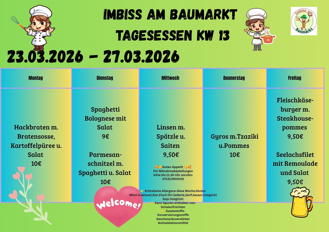 Der Schnellimbiss Imbiss am Baumarkt in Leingarten bietet schnelle, leckere Zwischenmahlzeiten direkt neben dem Baumarkt. Beliebt sind Bratwürste, Schnitzel, Currywurst und viele weitere Schnellgerichte. Ziel ist es, Kunden eine zügige Stärkung während des Einkaufs zu bieten – mit freundlichem Service, frischen Zutaten und fairen Preisen.